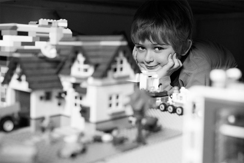 „Kükitage lapse silmade kõrgusele ja vaadake maailma läbi nende silmade. Võite ka istuda või ennast põrandale maha visata. Selline lähenemine aitab minimeerida taustal olevat segadust ja ennetada tähelepanu kõrvalejuhtimist. Võite täita tausta taeva, puude või seinaga, suunates kaamera eemale põrandale kallatud mänguasjadest. Samas võib teinekord ka sellise segaduse ja selle üle uhkust tundva lapse pildistamine hea mõte olla.“